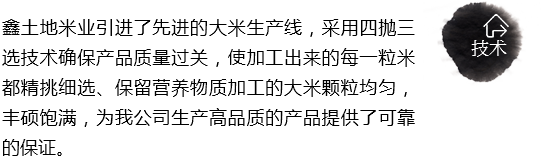 綏化市鑫土地米業有限公司成立于2002年,注冊資金500萬元,公司占地面積4萬多平方米,車間及辦公建筑面積5000多平方米,庫房面積30000平方米,庫容量可儲存糧食10萬噸,現有員工56人,其中專業技術及管理人員14人。